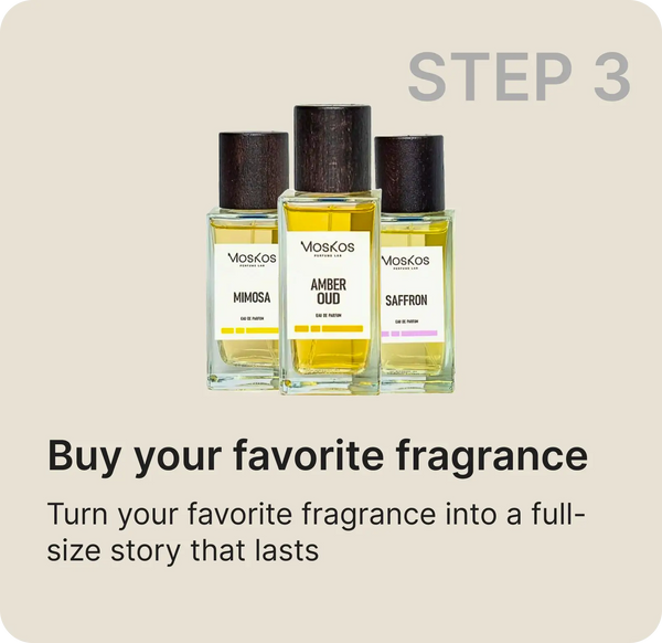 Bought these perfume samples blindly, not knowing any scent. Scents super, hard to choose any one, all perfumes consist of several scent notes that complement each other and match perfectly. Each scent is a head, heart and base notes composition. And also for such a good price! Liked AMBER OUD, MIMOSA, SAFFRON scents the most. MosKos constantly makes promotions, which is great! Thank them.????