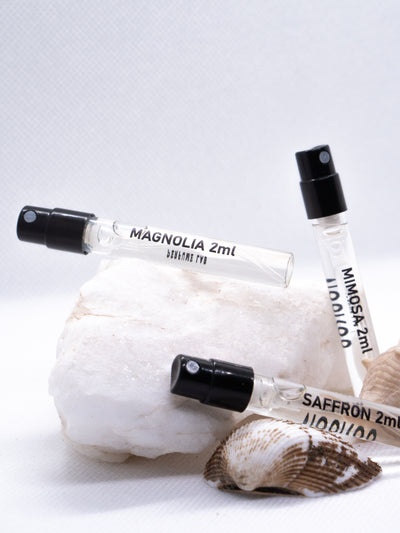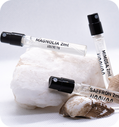 First purchased samples and understood that creators thought through sample convenience for use down to smallest details. Just that makes an impression how everything is thought out. And later with second and third order purchased aromas are luxurious, that please with their distinctiveness and long-lasting scent. Saffron and Balzamic Wood my favorites, husband chose OUD, which I spray myself too😉. Am enchanted by talented Lithuanian perfumers!